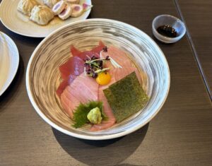 メインの料理が海鮮丼で、マグロが厚くて美味しかったです!